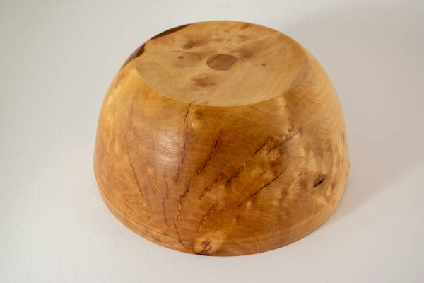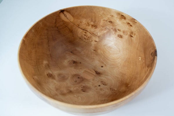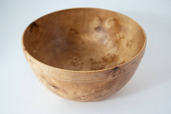 Deze schaal van Berkenhout is aan binnen- en buitenzijde afgewerkt met een voedselveilige minerale olie zodat het bruikbaar is voor salades, nootjes, chips en presentatie. Afmeting plm 21,5 * 10 cm, gewicht 460 gram.