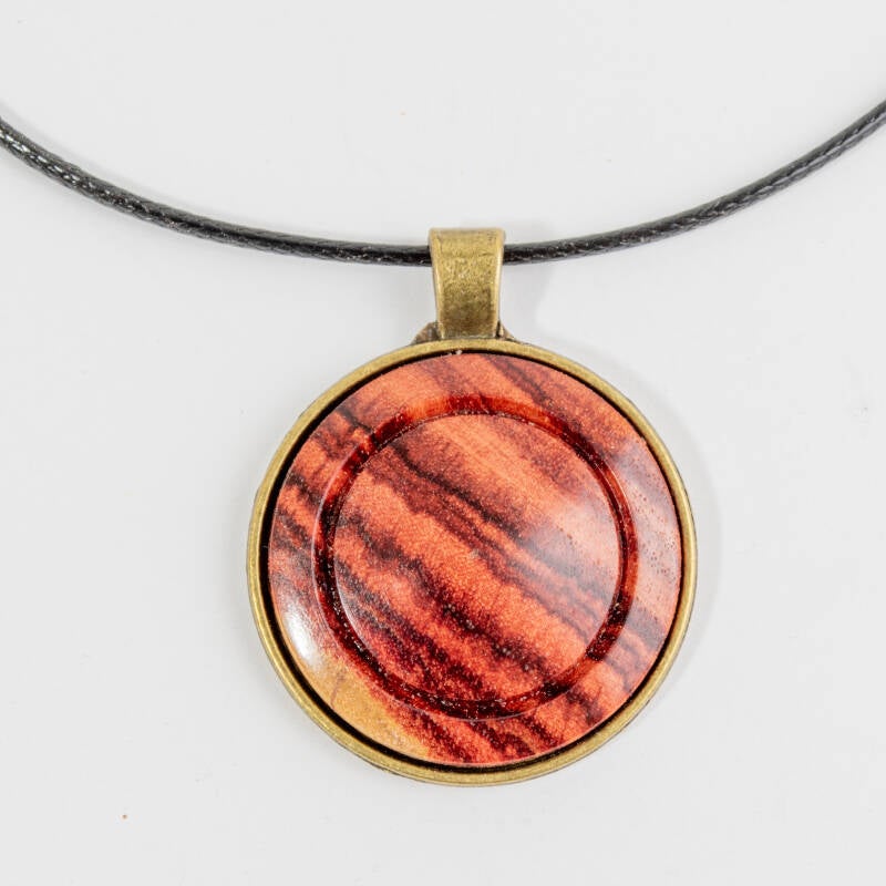 Zilveren hangers met Cabochon (vulling) in verschillende houtsoorten. Plm 30 mm of groter. Bijpassende zilveren of leren ketting zie accesoires. Prijs vanaf 35,00 Euro.